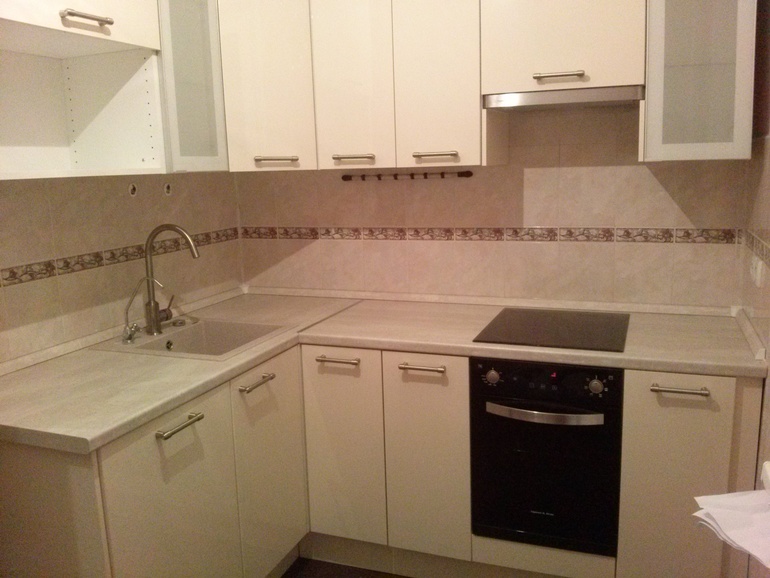 Кухня пилена- перепилена под наши размеры. У икеа нет тумбы для встройки 45 см духовки- пилили из 60 см. Угловой 120`60 пилили до 100`60. Посудомойка 45 см встраивали в 50 фасад- для этого тоже в икее не предусмотрено.