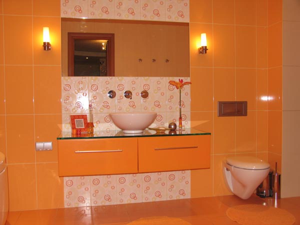 У нас оранжевая, почти такая же как на фото,недорогая покупали на обычном. строит. рынке, вроде до сих пор продается. Выбирал муж, в итоге мне тоже понравилась, в ванной очень уютно