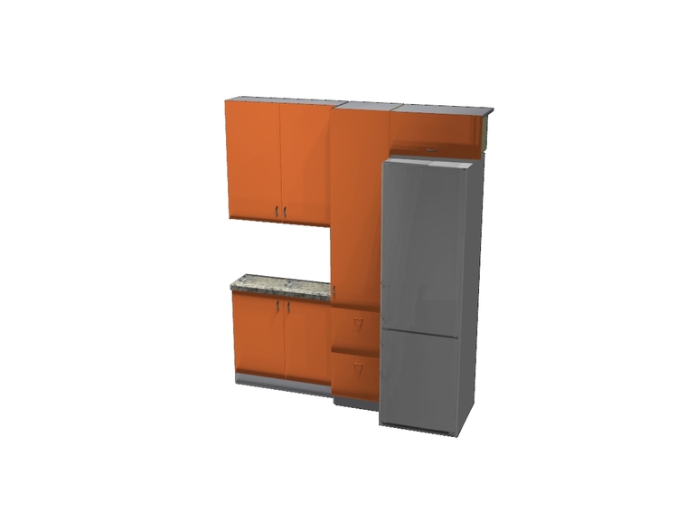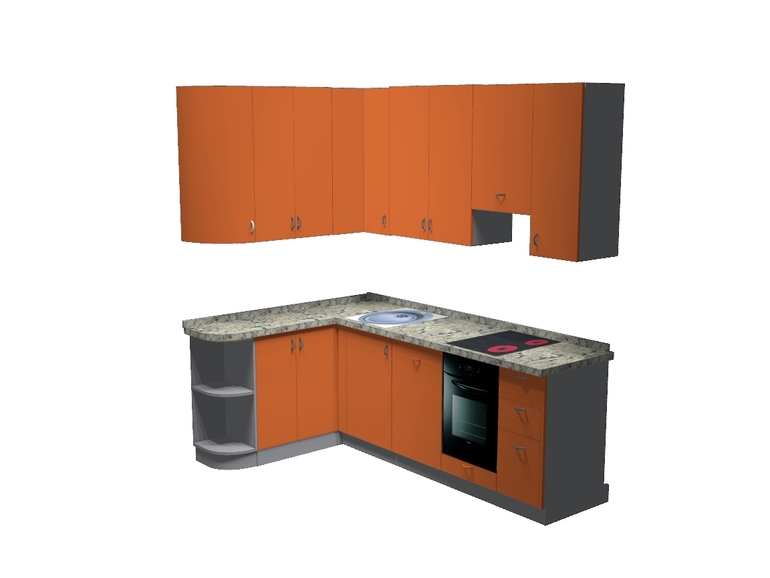 Один знакомый мастер предлагает нам такой вариант, но что то с ним не так. Подскажите, пожалуйста идей как его улучшить Гарнитур планируем поставить с 2-х сторон длина стены 2..10 м. Мне кажется, что надо добавить шкаф со стеклом вот куда лучше? И как лучше сделать угол над мойкой углом или так как представлено на рисунке ? Рассматриваю еще вариант плавного перехода. Еще смущает что на рабочую поверхность всего 45 см. Варочная панель будет на 2 конфорки. И не слишком ли много оранжевого? Реально цвет будет не много другой.