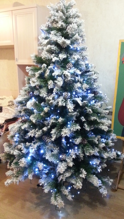 очень красиво) а она продавалась такая заснеженная, или вы искусственным снегом ее обрызгали?Просто хочу купить снег в баллоне, и думаю, как он будет смотреться на елочке...