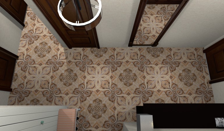 Левая плитка имеет желтоватый оттенок, центральная красноватый(т.е. оттенки плиток не совпадают), двери лучше подходят к центральной. Но эта разница очень мало заметна.Как будет в реале при дневном освещении и свете люстр, вообще не понятно.