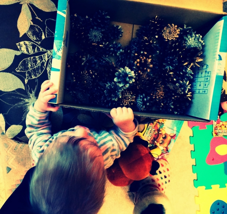 София принимала непосредственное участие!Коробка с шишками впечатлила её больше,чем ёлка)