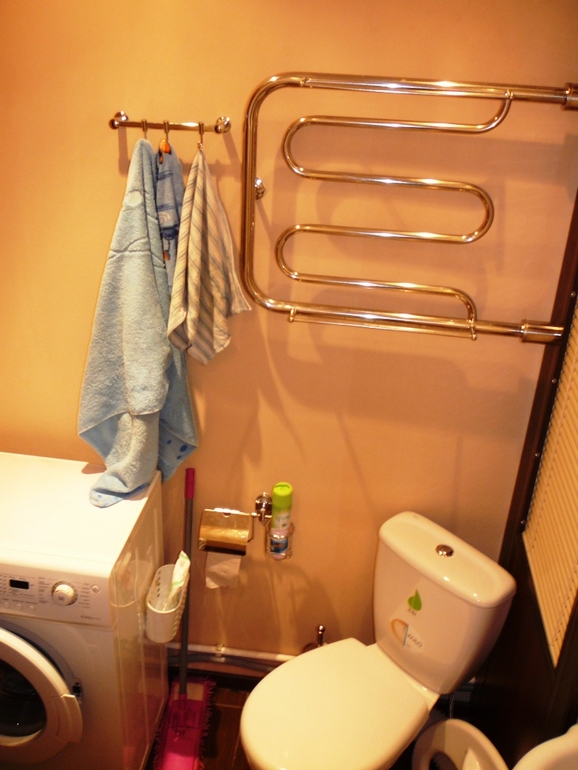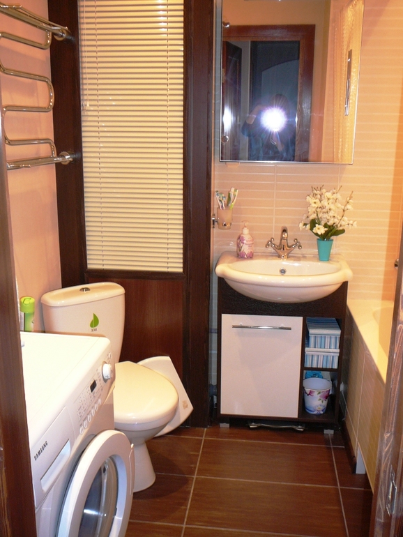Интерьерное решение ванной комнатыПродолжаю показывать наш ремонт в трехкомнатной квартире, который был закончен примерно год назад. И так, санузел: изначально это были раздельные туалет и ванная комната. Туалет маленький и узкий, не развернуться. Ванная комната тоже очень маленькая, типичная для панельного дома, где умывальник напротив входа в ванную, ванна сама справа, а на левой стене змеевик, поставить стиралку абсолютно негде, места мало, в общем. Поэтому было решено объединять эти помещения, а еще мы расширили санузел и за счет прихожей, забрали от нее 40 см. Прихожей это не навредило абсолютно, даже появилась ниша для шкафа для сезонной одежды и одежды гостей, плюс в кухне тоже появилась ниша, где мы сделали полочки для разных приятностей, которые делают помещение более домашним.