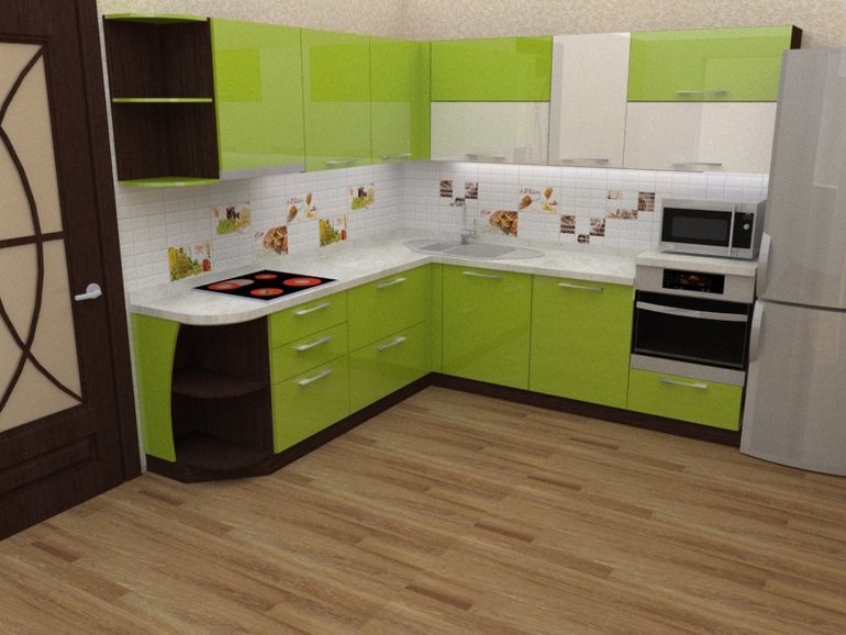 но с шоколадной обеденной группой как-то не очень, имхо... к тому же глянец сильно отражает, в шоколаде еще ничего, а вот светлая зелень, отражающая коричневый пол или стулья будет постоянно бесить ощущением грязи, теней и невнятных оттенков