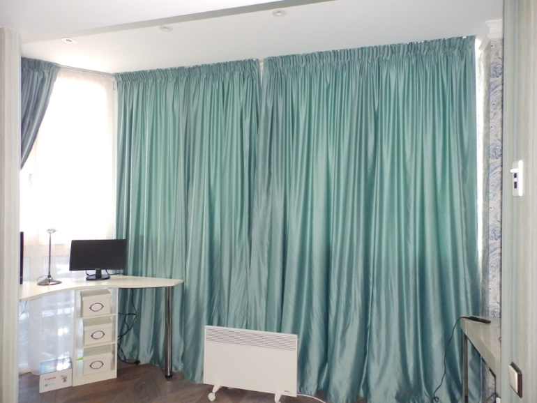 Cпасибо! сложно определить принадлежность, портьера итальянская ткань, плотная тафта, скорее, в мелкую складочку. та же самая ткань, что и на римках на кухне.