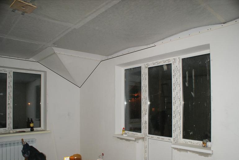 И выступ как в этом случае? Потолок натянут как в 1-ом варианте?