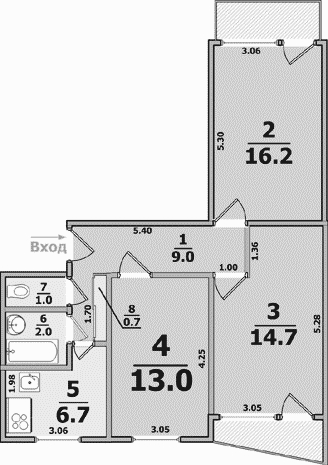 Нужно определиться, переносить ли дверь ближе к центру, т.к. вход находится практически у входной двери