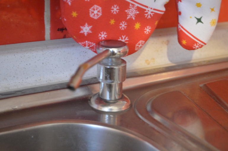 Угловая секция, это угловой шкаф. Не сфотографировала его почему-то, а вообще там стоят сервировочные тарелки, бокалы, контейнеры пласстиковые для хранения, блендер. И внизу моя любимая горячо мойка Teka. Ей я буду петь дифирамбы. Многие говорили, зачем вам такая большая. Это супер удобно! Я разделяю раковины на грязную и чистую. В грязную ставлю посуду, мою картошку перед чисткой, ополаскиваю и т.д. В чистой я кладу сразу продукты, чищу её отдельно и мою, чтоб она была всегда готова принять фрукты на помыть, мясо на промыть или разморозить. В грязной раковине врезан носик для дозатора фейри, его нет сверху на поверхности. Внутри раковины прячемся губка. Ещё одна моя гордость- кран с душем. Брала в Китае, не жалею. Безумно удобно. Единственный минус был- короткие шнуры)))) Кран поворачивается и дотягивается до обеих раковин, но в чистой раковине удобнее пользоваться душем. В чистую раковину выходит носик фильтра, у нас Гейзер, модель не помню. Нужно ли мне крыло для сушки? Нужно. Я же не буду в ПММ засовывать всё подряд. Напрмиер, ополоснула блендер, посушила, убрала. Вот моя моечка.
