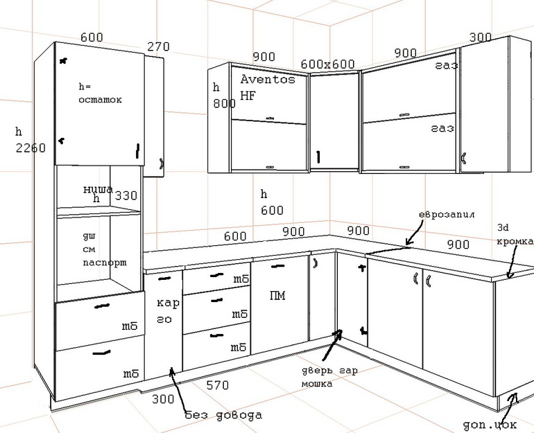 План кухни, которую мы заказывали тут у Ангелинки . Я хоть и пришла с почти готовым проектом, но всё равно Ангелиночка на последних неделях беременности мне помогла усовершенствовать и довести проект до ума. Как результат моя любимая кухня