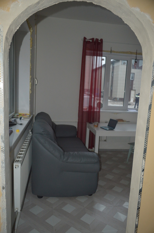 На фото видна столовая часть кухни. Диван кожаный Бостон от "Цвета диванов", стол Икеа - модель Бьюрста. Диван делали на 1,5 месяца дольше обещанного, но выплатили все штрафные. Столом тоже довольна на все 100%. Неубиваемый. Ищу на него силиконовую накладку, чтоб вообще сделать его неуязвимым. Карниз Икеа, тюль шилась в Китае под заказ. Немножко по другому она будет висеть, но пока так.