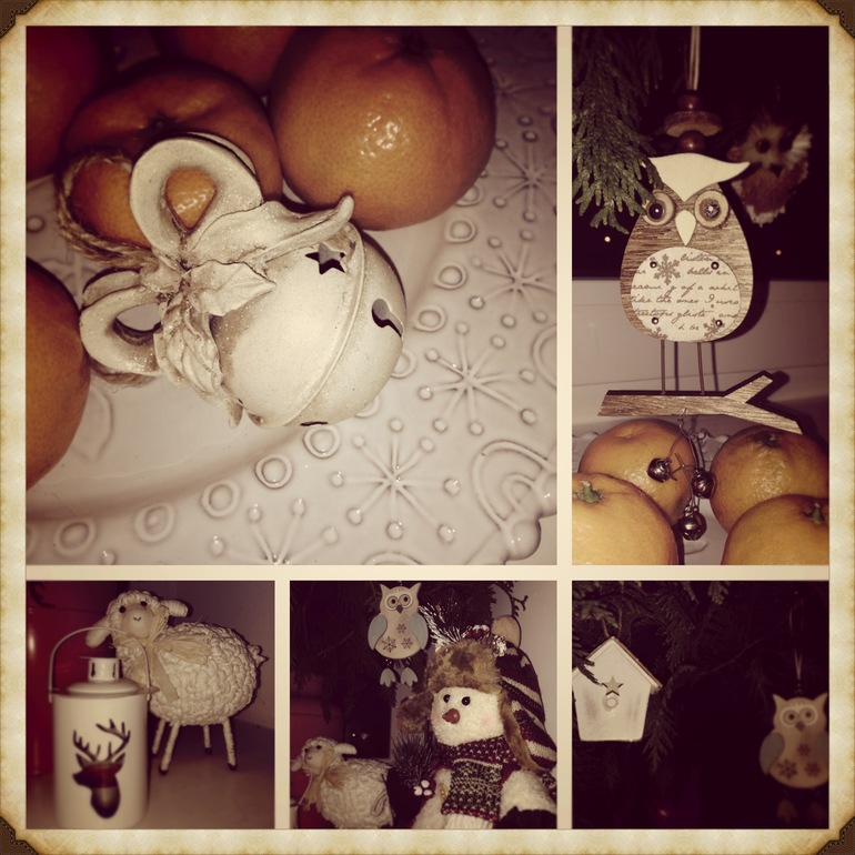 По совушкам у меня дочь;) все птички были куплены случайно... В каких-то неприметных магазинчиках... А рядом с мандаринами лежит бубенец. Металлический, а бант, по-моему, что-то полимерное. Просто на "елке" он был бы лишним, а среди мандаринов ему самое место.