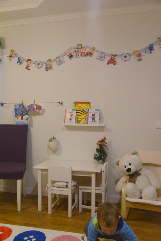 Изначально комната была 20 кв.м., но т.к.мы любители отсутствия шкафов в комнате, то было принято решение отгородить часть под небольшую гардеробную для детских вещей.
