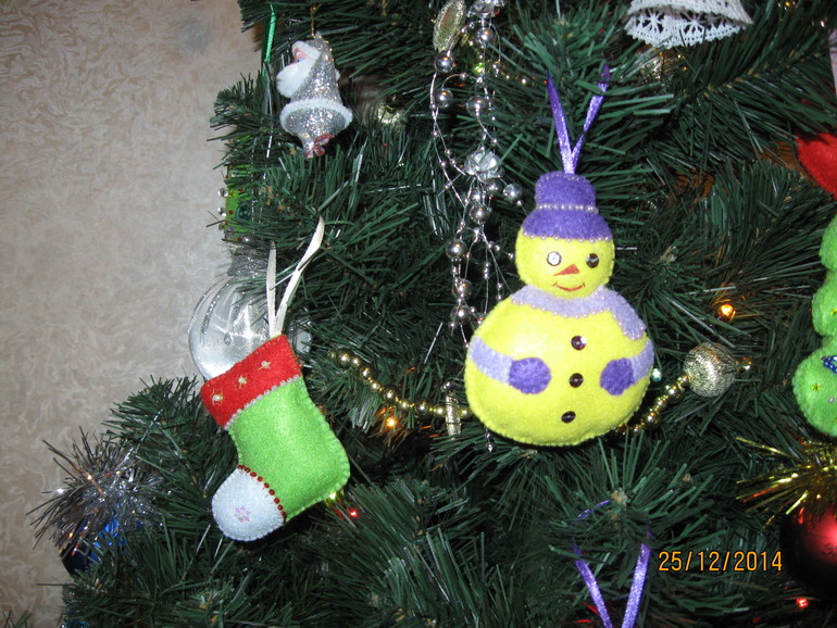 Что то меня накрыло почти под НГ и взялась я шить игрушки мягкие новогодние ))). С ними елочка стала как то уютней. Деть вообще в восторге. Его к ним так и тянет. До этого только на огурец пенопластовый, еще из моего детства, обращал внимание.) Пока шила, нашила себе новогоднего настроения. Чуть позже еще появятся на елке имбирные пряники. Всех с наступающем!!!
