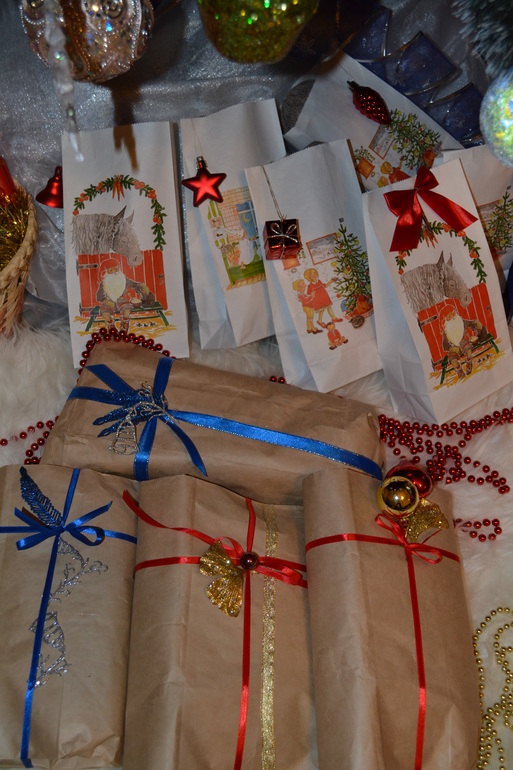 Подготовка дома к праздникам.Захотелось кроме обычного привычного красивого пакетика упаковать подарки слегка аутентично в простую бумагу. Завернула все, что смогла