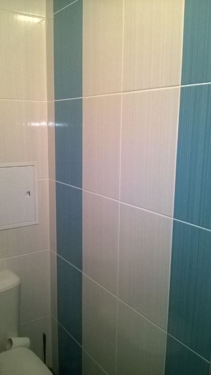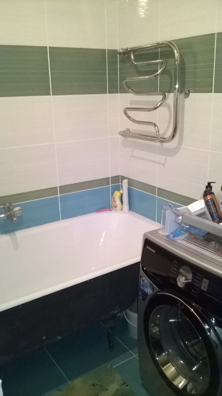 Смеситель пока временный,хотим еще экран поставить и вообще облагородить,плитка искажена немного,в жизни не зеленая ,а более бирюзовая