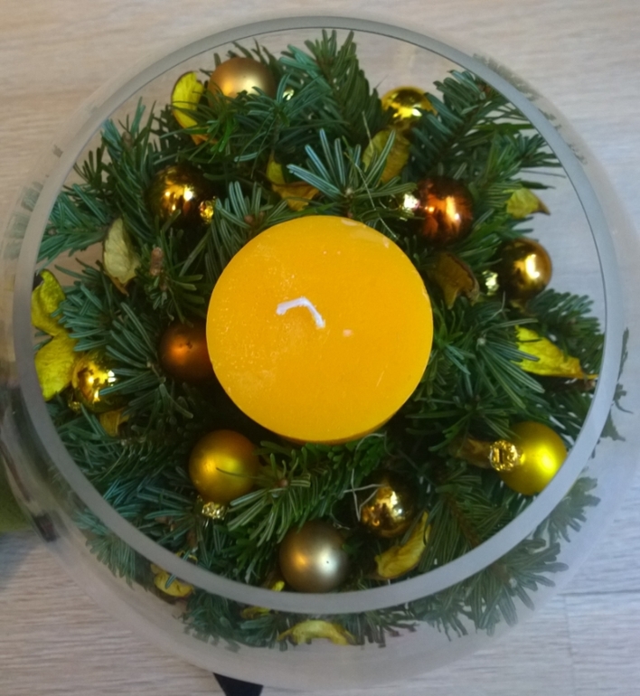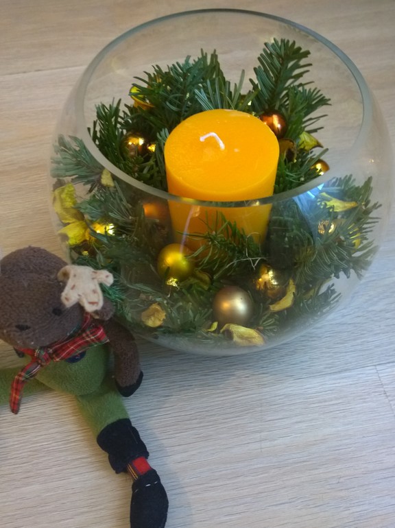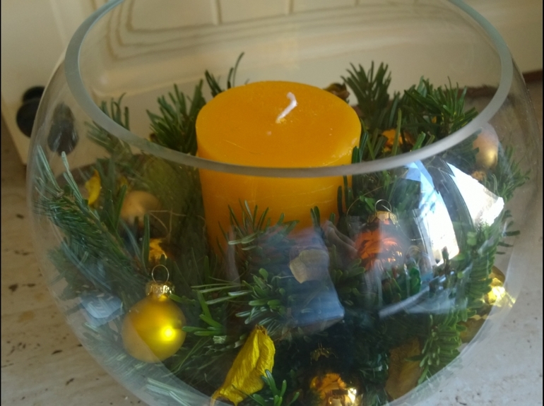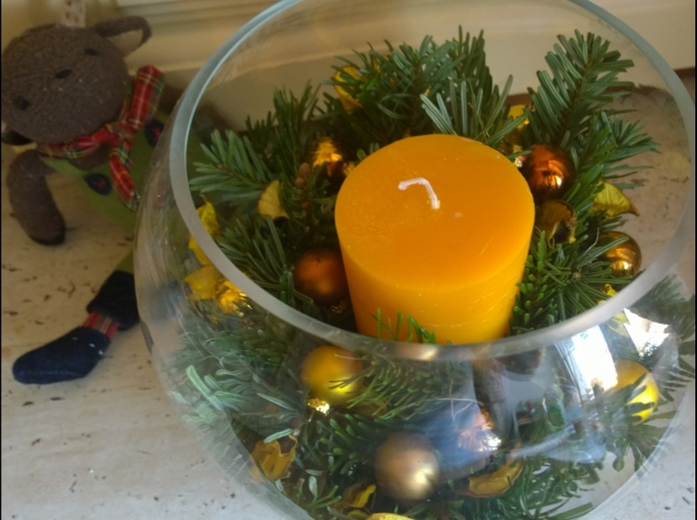 Ваза Хофф-150р, саше Ашан -40р, свеча там же 60р, лапник с елки, шарики из домашних запасов