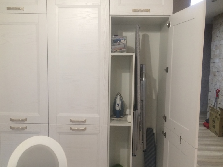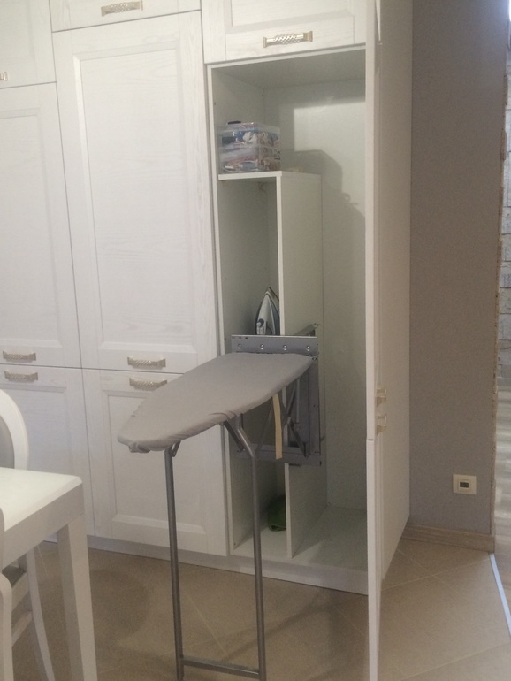 здорово!!! жду фото гладильной доски и покажите как мультиварка расположилась ?удобно? в каком шкафу?
