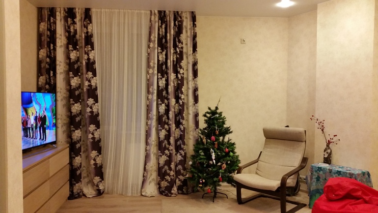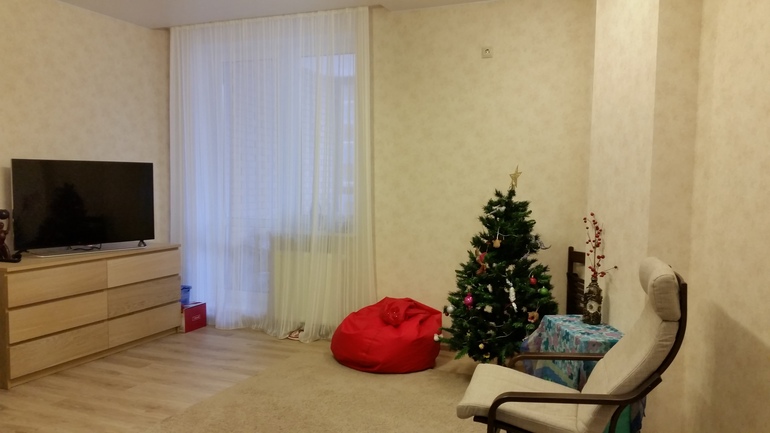 Интерьерное решение гостинойСвершилось! Практически под Новый год мы переехали в свою новую квартирку. Есть и косячки, не без этого...так родился малыш мне было совсем не до ремонта.. что то покупали наскоком , что то муж сам.. Комод, палас и кресло переехало с нами из старой квартиры.с комодом расставаться жалко, удобный очень, да и года ему еще нет.. кресло тоже выручало , почти новое, но поставить его больше некуда .. вот и толпятся все в этой комнате..Покажу фото как есть на данный момент.. конечно нужно многое докупить еще, например диван в гостиную, какие ни будь полочки- для зоны ТВ, шторы.. может палас поменять..стены ума не приложу как украсить.. ну в общем смотрите, будут идеи-кидайте, рассмотрю все)))