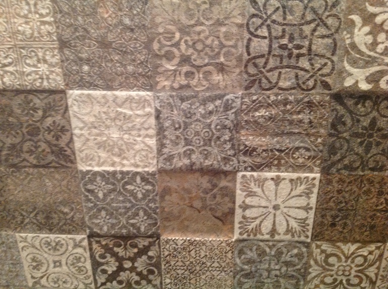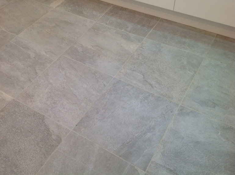 На полу при входе испанский керамогранит, на кухне и на балконе он же.