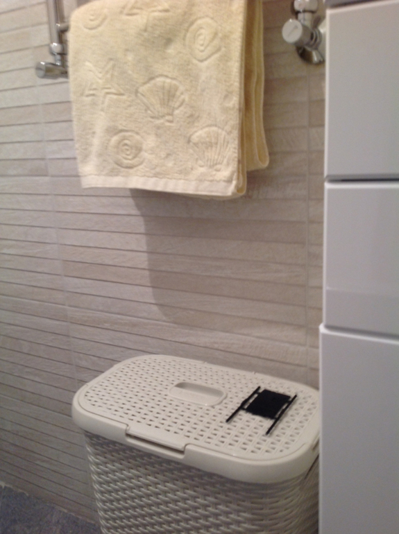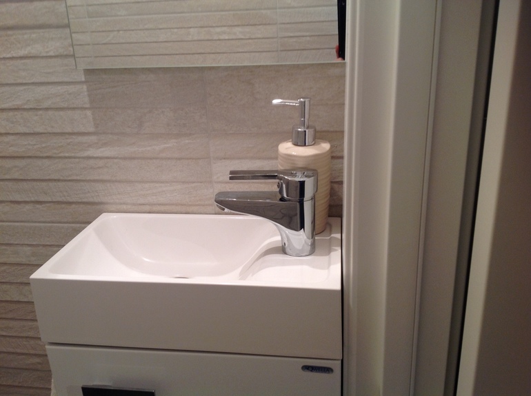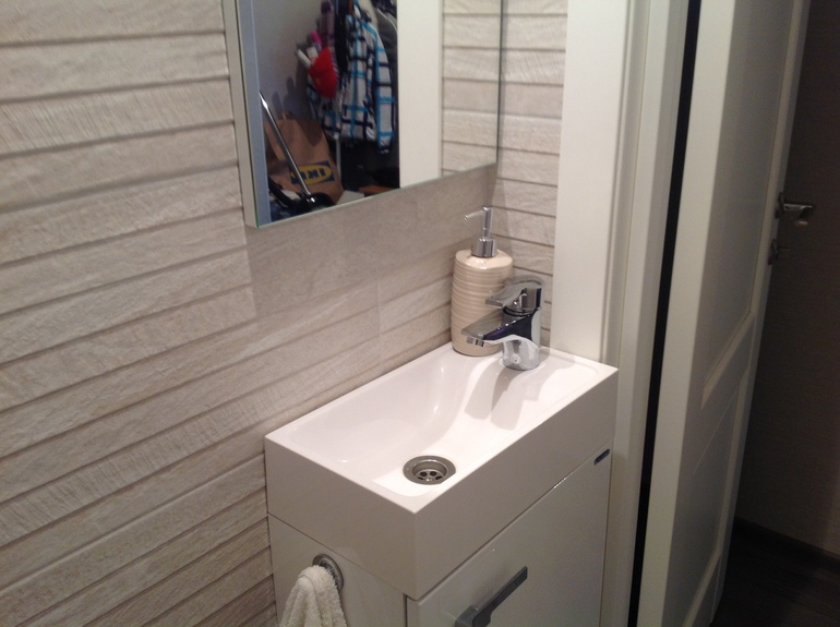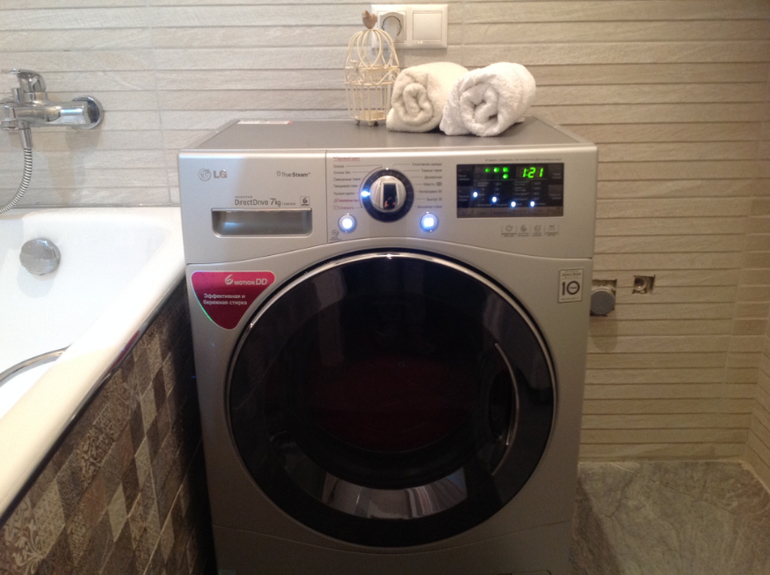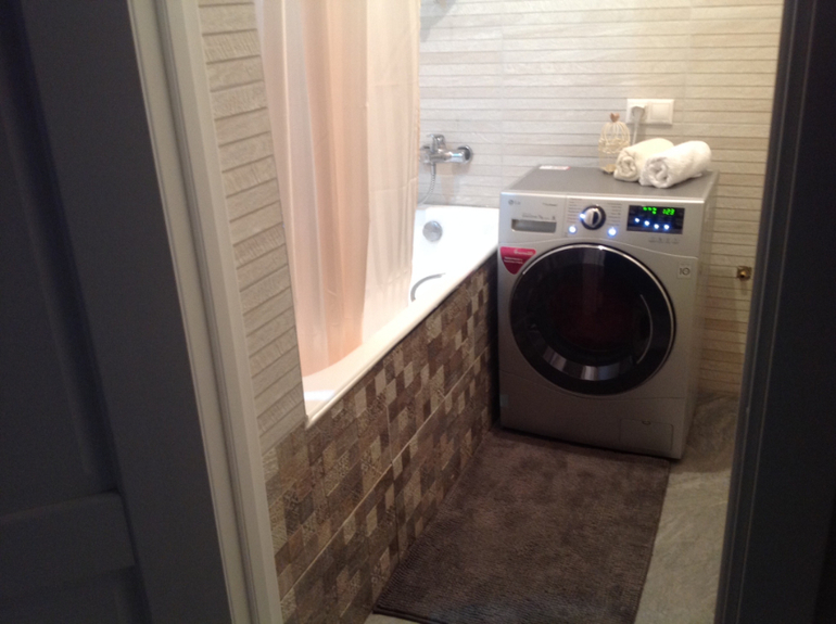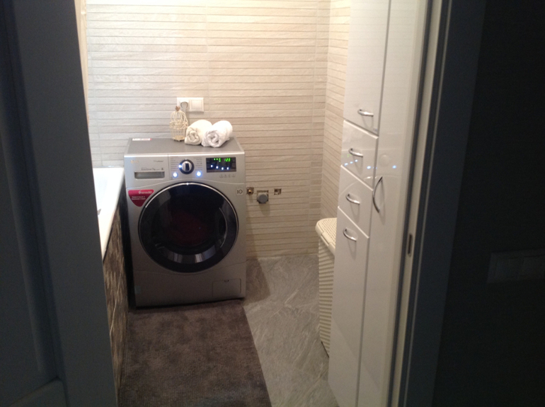 Позже здесь будет шкаф под раковину и машинка будет встроена в него.