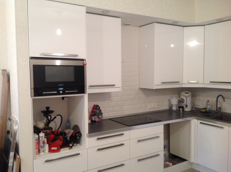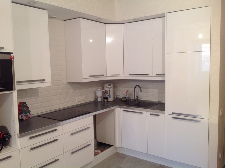 Кухня икея, холодильник икея (исанде), микроволновка сименс, индукционная варочная поверхность бош. в будущем появится духовка и ПММ. Мойка и смеситель Бланко.