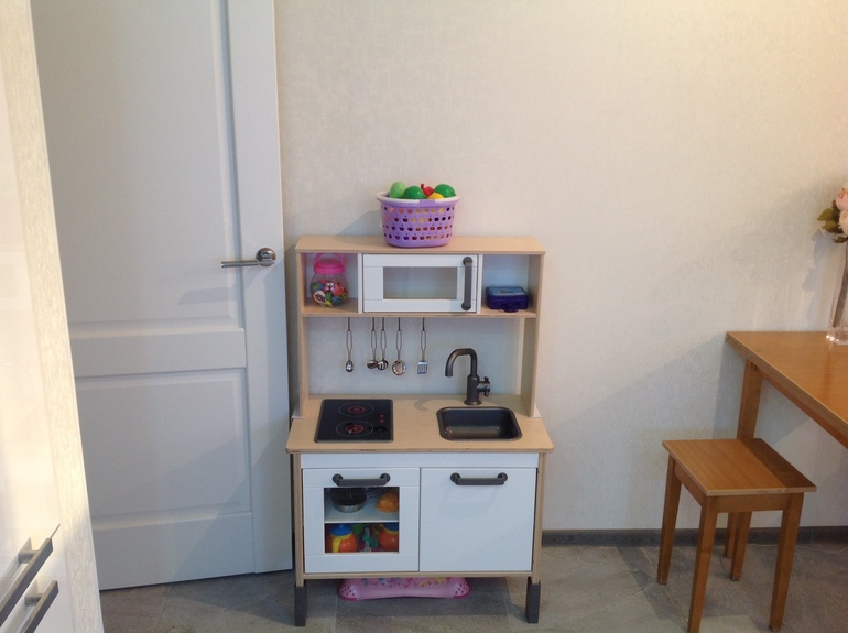 Купили Доче кухню, у мамы же есть новая кухня и у нее должна быть и пока она стоит на взрослой кухне,т.к. доча всегда со мной, теперь мы готовим вместе)