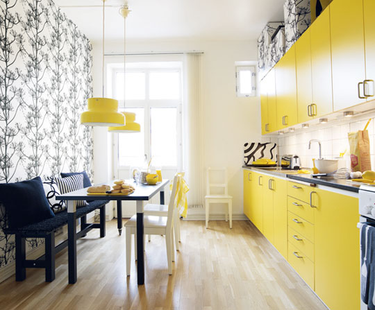 Я в свое время, увидев эту картинку, тоже подобрала подобные обои и наклеила, но не на всю стену, а по центру несколько листов. Мне нравится. Кухня у нас оранжевая.