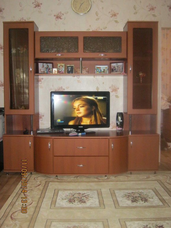 Интерьерное решение гостинойДевочки,приглашаю в мою гостиную...давайте покритикуем-пообсуждаем?? .Есть вот такая гостиная,мебель стенка и угловой диван,будет еще только журнальный столик.Потолок натяжной белый матовый,люстры еще тоже неть... Площадь 15 кв м, два окна 1,05х1,5 м(шхв) расположены не посередине стены и дверь в детскую. Обои наклеены и переклеивать не будем,пока доча не перестанет на них рисовать.Ковер на полу тоже временный,пока я с цветовой гаммой не определюсь,потом в детскую переедет.Вопросы для обсуждения(надеюсь будет с кем пообсуждать)))):1-КАК повесить сюда шторы???