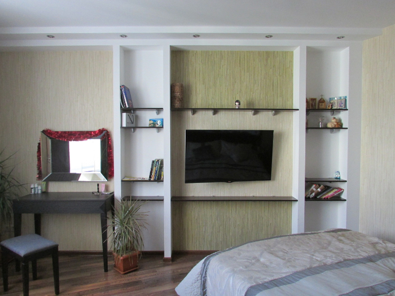 Спасибо, что поделились, очень интересно было посмотреть. Видно, что заказчикам проект очень нравится, старались все воплотить точь -в-точь.Мне лично понравилась спальня на визе. После всей динамики эта комната успокаивает. А что в ней на стенах по проетку — какие -то панели из бамбука?Спа