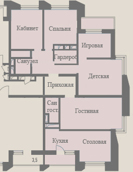 Как приятно, что мой скромный труд профессиональный дизайнер комментирует:) Спасибо Вам большое! Игровую я намерено разместила вдали от спальни. Т.е. квартира функционально делится на 2 зоны: хозяйскую (где спальни и кабинет) и гостевую. Пока дети маленькие — они должны быть под контролем взрослых, скорее всего в течение дня я буду проводить время на кухне, в постирочной, возможно в гостиной и игровая рядом, дети под контролем. Если игровую размещать рядом с детской — дети ночью будут пробираться из спальни и играть:) Санузел 5 метров, больше сделать не получается:( Холл большой, да, можно было бы меньше. Но вся семья (как минимум 5 человек) высыпет с утра из своих комнат и будет собираться в школу, на работу... Кабинет находится под кухней соседей, если там будет спальня скорее всего звуки будут мешать, кроме этого согласовать такое размещение не получится. Кабинет в случае чего согласуется как гардеробная. На самом деле я тоже думала, что это помещение было бы хорошо как спальня, балкон опять же.... Но вышеописанное останавливает.