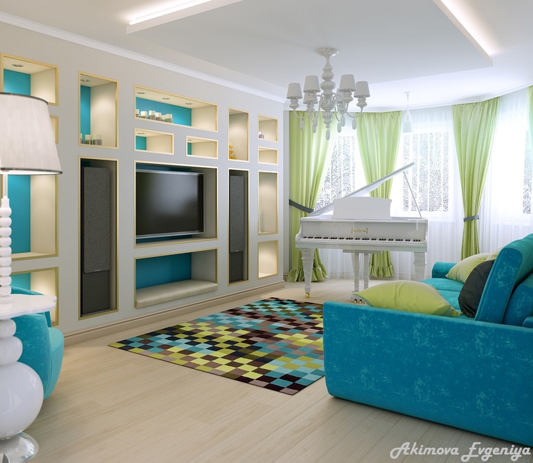 Очень симпатично! Наша гостиная будет именно в таких цветах (кроме черного):) одна стена будет целиком бирюзовая :) обожаю этот цвет!