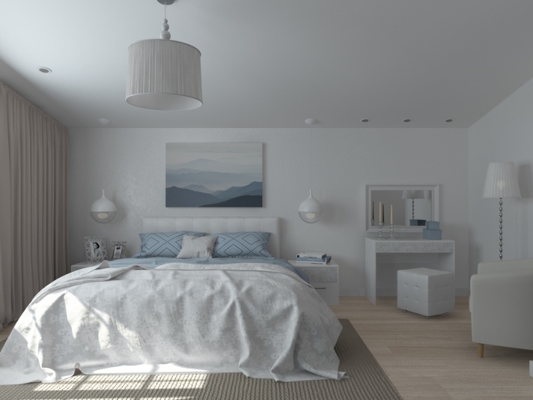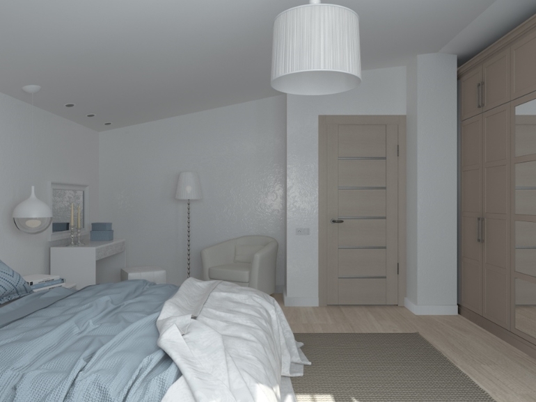 Интерьерное решение спальниВот он случай, когда у заказчика и у меня единый взгляд на дизайн. Безумно красивые обои, романтическая цветовая гамма и современный дизайн мебели. Спальный гарнитур мебель Трия. Гардеробные шкафы мой дизайн. Подвесные светильники, торшер и кресло известная Икеа. Приятного просмотра)