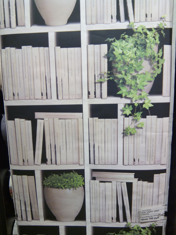 и вот не знаю, мебель у нас бук и коричневый диван (приложу фото), может обои под мебель, чтобы она слилась и не так выделялась (не нравится мебель эта). Но то что более-менее понравилось все равно не вселяет уверенности и осталось в магазине. Потому что в голове книгииииии...