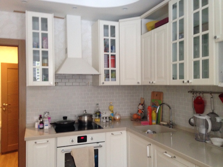 Вопросы и ответыВот такая пресненькая кухня в моих любимых бело-молочных оттенках получилась. Вышел косяк - на первом фото- плитка после затирки получилась не белой а серой, а столешка кофе с молоком, и в итоге все вместе не очень в тему вышло. Была мысль покрасить плитку, но не знаю, будет ли краска на ней держаться? Девочки, какие шторы лучше повесить? Жду от вас советов! Спасибо;)