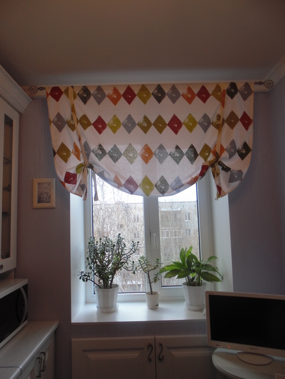 Декор окон. Текстиль. Жалюзи.Переделала шторы на кухне. Из такой шторки попросила в мастерской сделать французскую