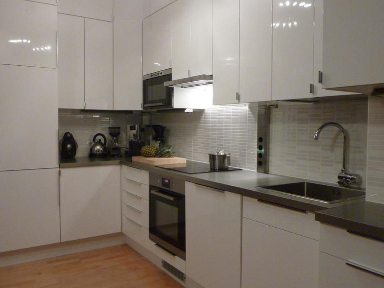 Кухня 10 квадратов с вентиляционным коробом. Как правильно класть фартук?