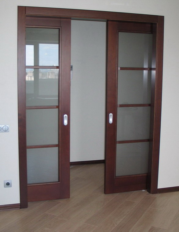 Бывают с карнизами (рельсами), по которым и ездят двери.