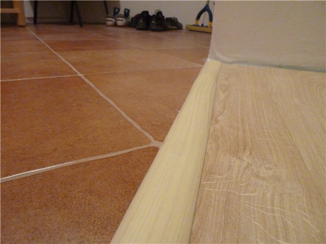 Муж 2 дня вымерял и ползал по махонькому коридору, что бы совместить 3 плоскости без порожков. Ему это удалось)))
