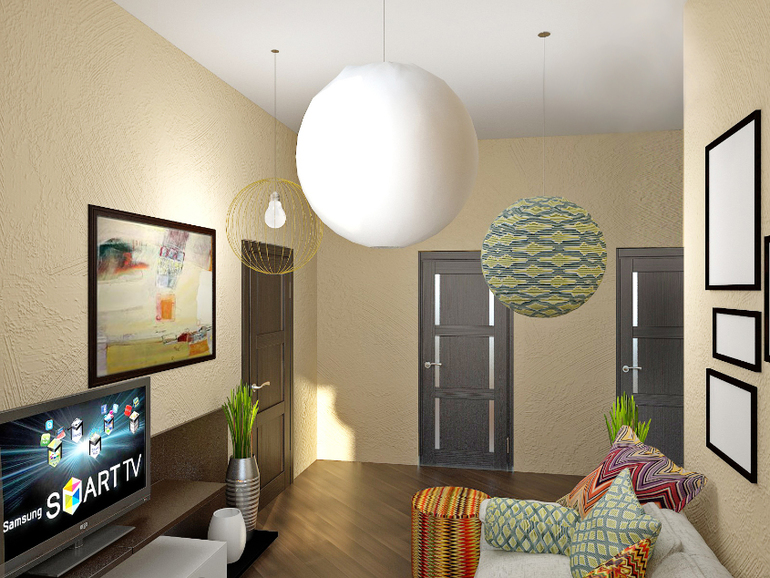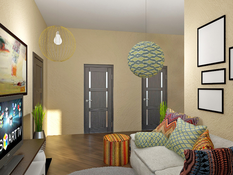 Очень жизнерадостный холл .Думаю,что здесь будет комфортно находиться и вечером перед тв, и днем с книгой)