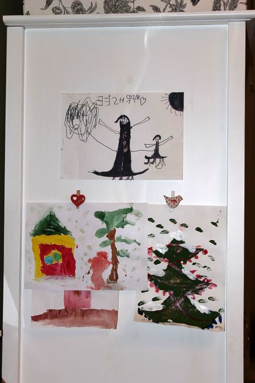 О супер! У меня на кухне выставка шедевров тоже на боковине шкафа на скотч двусторонний! Спасибо за идею, прищепочек красивых у меня тонна!(где то надо поискать)))))