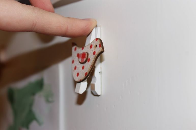 А потом на двухсторонний скотч я прикрепила прищепочки. Еще две будут.