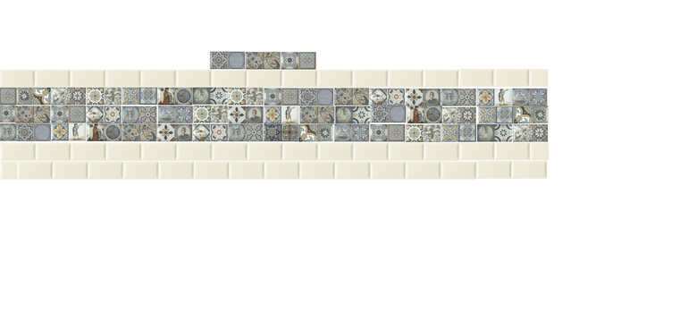 над столешницей ряд бежевого кабанчика потом три ряда монополь антика и сверху снова бежевый кабанчик