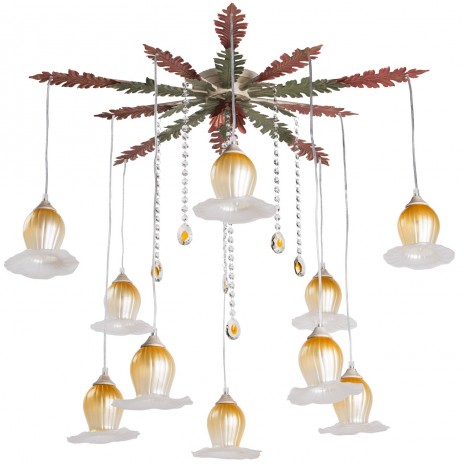 к этой люстре очень подойдет ковер с оленями и кружевные салфетки на диван, будет стиль постсоветская эклектика!