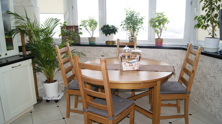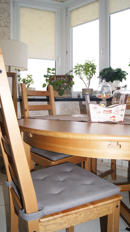 Долго продавали свой стеклянный, ну наконец он нашёл нового хозяина и благополучно отбыл)))) Параллельно я нашла тоже бу стол. который нужен мне. И вот вчера муж его собрал......... Я уже не хочу его красить!!!! Он так мне нравится именно такой. Думаю, неплохо вписался. На него так и хочется салфеточки, дорожку............. И когда уже я на шторы сподоблюсь?????? Надеюсь скоро)))))