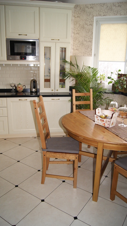 Интерьерное решение кухниМоя кухня предполагала 2 варианта стола- чёрный, белый........ Не хочу, тем более матёрую классику с вензелями и на одной ножке. Ну как-то не вязался он с моей кухней. Хотела кухню Прованс, промахнулась с цветом столешницы и весь Прованс пошёл прахом)))))