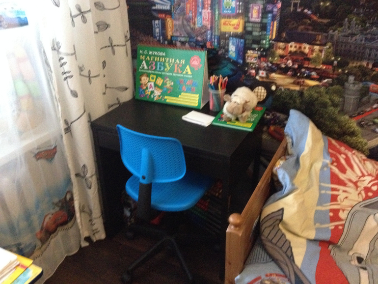 мне понравились ваши рабочие места: маленькие столы-парты лучше, бардак на столе не будет задерживаться))) а вот на счет телевизора в детской, я категорически против.