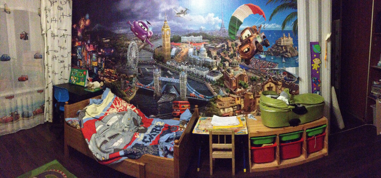 А вы не думали сделать одну гардину как бы детскую для девочек? А то у вас везде машинки;)))