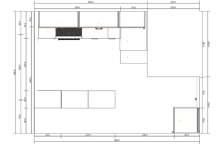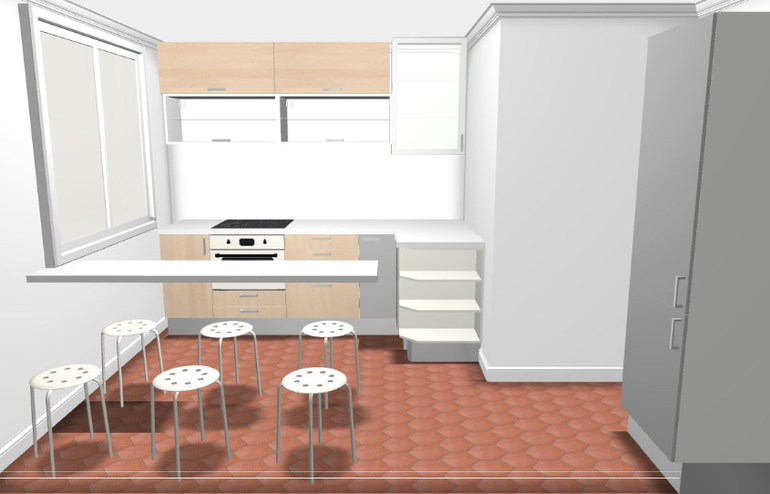 Почитала комментарии.Решила обдумать все. Как бы я сделала себе.Холодильник отправила в угол при входе, как вы и написали. Но позволяет ли ширина угла?Оставила бы угловую кухню. Вариант выкладываю.Подоконник бы оставила на месте и не делала демонтаж, т.к. это все деньги (для меня сейчас это актуально, т.к. в стране творится непонятно что и цены на кухни выросли в 2 раза).Оставила бы все с закрытыми дверями, без стекол. Двери все распашные, без поднятия вверх, т.к. это не удобно и дорого.Возможно, свой вариант доработала бы — вместо одной секции на 60 внизу добавила 3 ящика. Барную стойку убрала. А оставила стол. На случай гостей — раскладной и изменить его положение (относительно того, как стоит сейчас).Размеры слева направо:низ 60-20 (карго)-60-60-мойка с дверью на 40-50верх 60-20-60-60-угол 60Х60-30-60Мойка и печка не близко, а это удобно. И что главное — есть место рабочее!!!Если есть микроволновка, то ее бы засунула в верхний шкаф самый левый на 60. Открываться будет удобно. И не ставила бы на столешницу в целях экономии места.И верхние фасады сделала бы на 90 (а не стандартные 72).