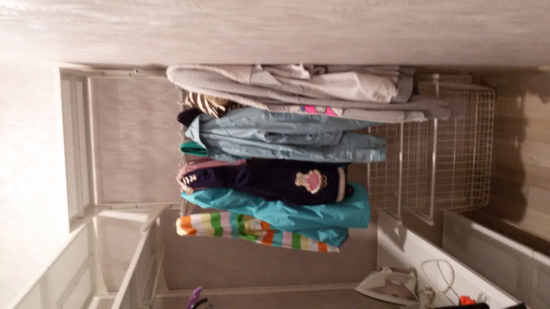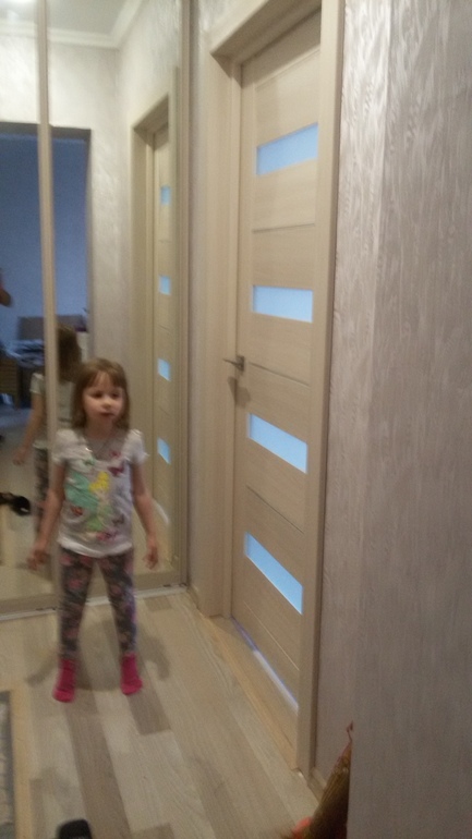 в прихожей за стеклянной дверью получилс вот такой гардероб, одежда висит на палочках от вешалки для брюк..пока приезжаем а не живем..пока так..потом будут вешалки