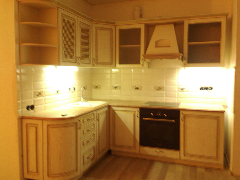 кухня заказывала, немного не доработана ещё, не правильно вырезали размер стекла в одном шкафу, забыли уголки, и промежуток между стеной и шкафами будут закрыт декоративными панелями.